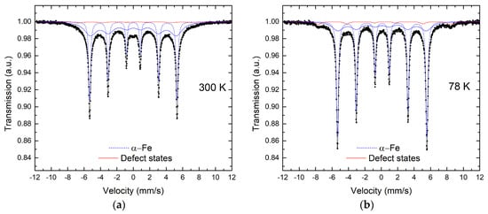 Mössbauer spectroscopy was studied in transmission geometry and at 78 K. A constant acceleration Mössbauer spectrometer Ms-1104 Em (Kordon, Rostov-na-Donu, Russia) and a 57Co source (Ritverc, 10 mCi) were applied. A UnivemMS 9.08 program was used to decompose the measured spectra. The isomer shifts were determined relative to the α-Fe spectrum at room temperature.