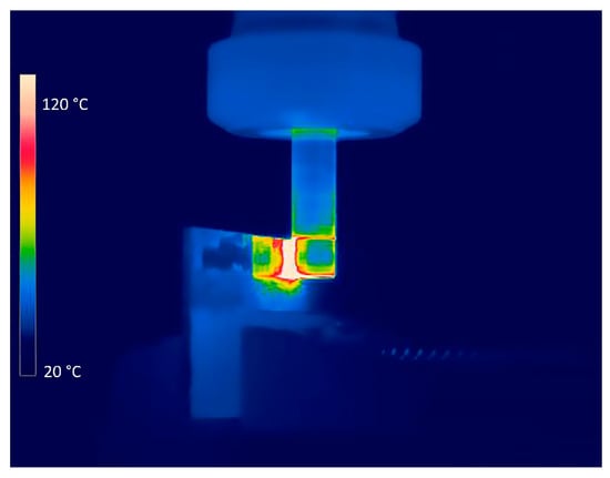 Figure 5 presents a thermal infrared photo of the friction surfacing process using the side of the consumable tool, which shows that the highest temperature occurs at the tool–substrate contact interface.