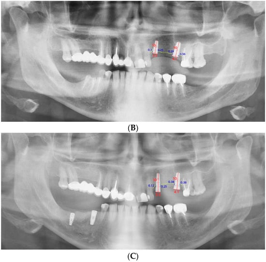 For better reproducibility, the X-ray examiner (N.P.-G.) performed all the measurements on the radiographs and was different from the surgeons who placed the implants; thus, the distortion bias of the measurements could be reduced.