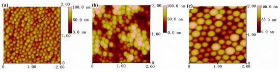 AFM topographies: (a) sample P3, (b) sample P9, and (c) sample P10.