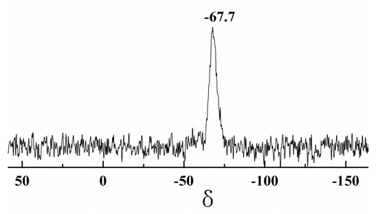 Figure 7 presents the 29Si NMR spectrum of the PDMSQ NPs. It is obviously discovered that a pinnacle occurred at the chemical shift of −67.7 ppm, which should be assigned to the characteristic peak of Si in the T3 structure of the PDMSQ as RSi(OSi)3– [1,13,14].