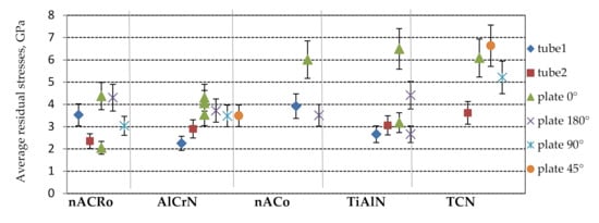 To gain a better overview of the measured residual stresses for different types of coatings, a graph is presented in Figure 6.