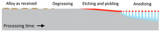 - Ma, Y.; Zhou, X.; Thompson, G.E.; Zhang, X.; Luo, C.; Curioni, M.; Liu, H. Microstructural modification arising from alkaline etching and its effect on anodizing behavior of Al–Li–Cu Alloy. J. Electrochem. Soc. 2013, 160, C111–C118. [Google Scholar] [CrossRef]