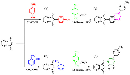 - Zhang, K.; Ishida, H. Smart synthesis of high-performance thermosets based on ortho-amide–imide functional benzoxazines. Front. Mater. 2015, 2, 5. [Google Scholar] [CrossRef][Green Version]