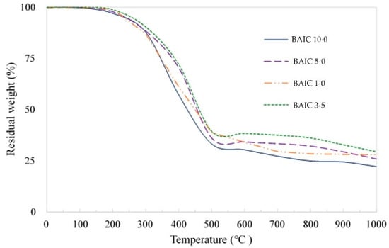 Thermogravimetric analysis (TGA) curves of BAIC samples.