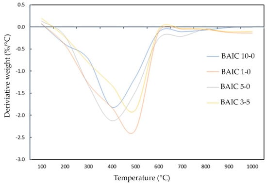 Derivative thermogravimetric analysis (DTG) of BAIC samples.