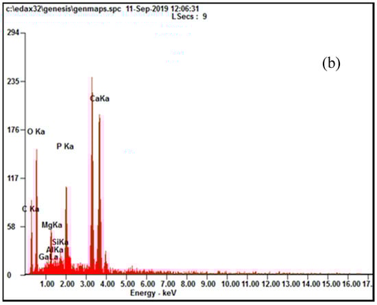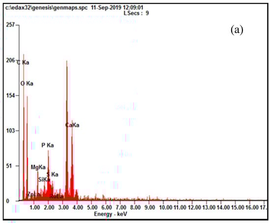 Condition of original BioAsh and BioAsh after being wet-dried were analyzed using EDX. Primary mineral contents and changes in wt.% are as tabulated in Table 4. Changes in mineral contents in the original BioAsh and BioAsh after being wet-dried were identified in Figure 8.