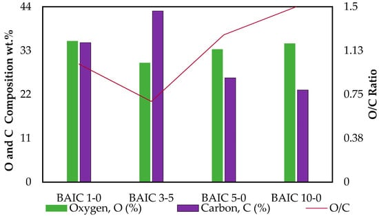 Oxygen and carbon composition, and O/C ratio of BAIC samples.