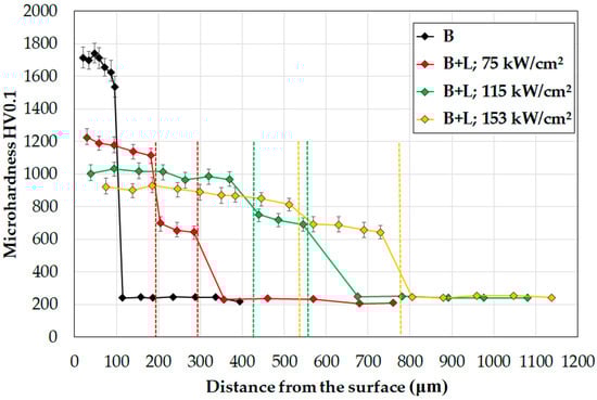 - Bartkowska, A.; Swadźba, R.; Popławski, M.; Bartkowski, D. Microstructure, microhardness, phase analysis and chemical composition of laser remelted FeB-Fe2B surface layers produced on Vanadis-6 steel. Opt. Laser Technol. 2016, 86, 115–125. [Google Scholar] [CrossRef]