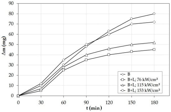 | B + L (153 kW/cm2) | 1.04 × 10−5 | −1.07 × 10+0 |