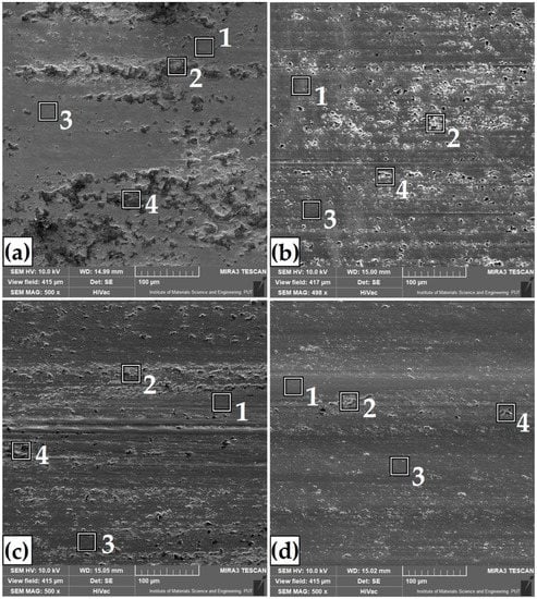 - Bartkowski, D.; Bartkowska, A.; Popławski, M.; Przestacki, D. Microstructure, microhardness, corrosion and wear resistance of B, Si and B-Si coatings produced on C45 steel using laser processing. Metals 2020, 10, 792. [Google Scholar] [CrossRef]