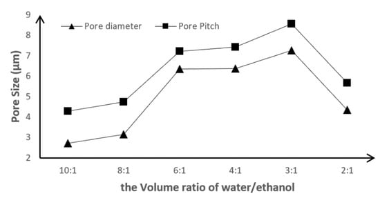 3.2. Influence of Volume Ratio of the Water/Ethanol