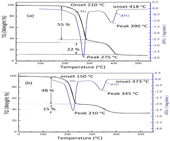 TGA-DTG thermograms of (a) APA and (b) PAIIL.