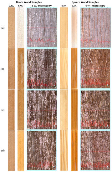- EN 927-6:2008 Paints and Varnishes. Coating Materials and Coating Systems for Exterior Wood. Exposure of Wood Coatings to Artificial Weathering Using Fluorescent UV Lamps and Water; European Committee for Standardization: Brussels, Belgium, 2008.