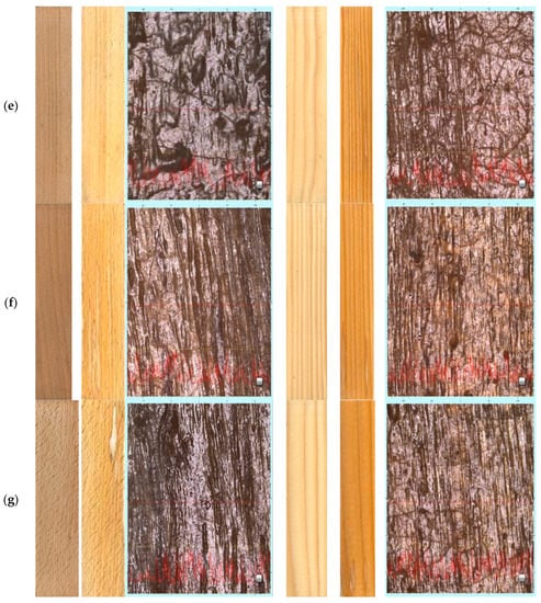 - Volkmer, T.; Noël, M.; Arnold, M.; Strautmann, J. Analysis of lignin degradation on wood surfaces to create a UV-protecting cellulose rich layer. Int.. Wood Prod. J. 2016, 7, 156–164. [Google Scholar] [CrossRef]