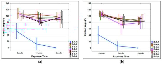 3.2. Colour, Gloss, and Water Contact Angle Changes during AW