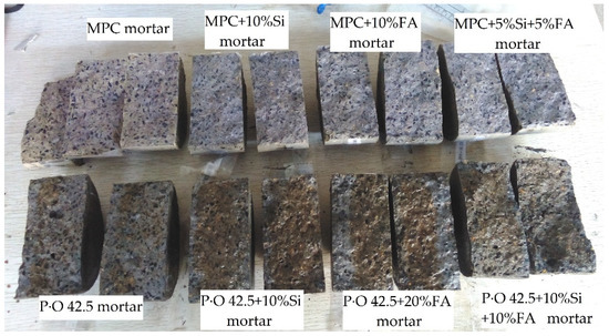 MPC material and P·O 42.5 mortar composite flux experimental specimens.