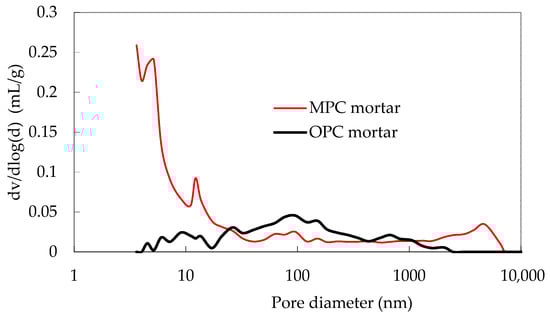 Total porosity and pore volume distribution of the MPC and OPC mortar.