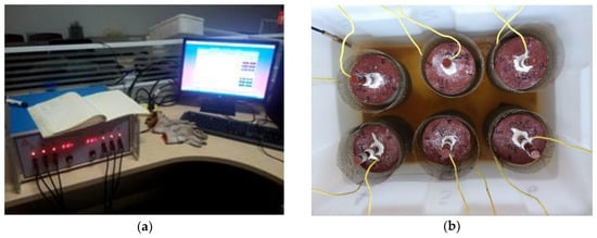 An LC-8 type concrete electrical flux tester (Time Aerospace Instrument Technology Co. Ltd., Beijing, China) was used in the experiment. As shown in Figure 2, the indoor air conditioning and humidifier-controlled indoor temperature was between 20 and 25 degrees, with humidity of 65%. The sample was wrapped around with wide tape for moisturizing.