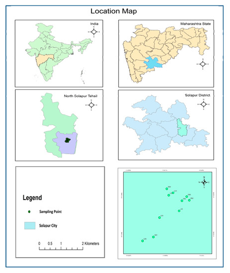 For the validation of the developed gas sensor module, in total, ten different sites were taken into consideration. These sites were defragmented into two categories: (i) large containers (LC) that are solid waste dumping sites, and (ii) open sites (OS) such as market place, garden area within city, traffic area, etc. The geographical identification of the sites under testing is tabulated below in Table 1 and Figure 7.
