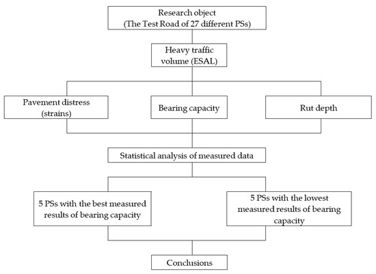 Road pavement structures have been under investigation for several years, which should best suit the climatic conditions of Lithuania and withstand the increasing impact of vehicle loads. One of those was created in 2007—The Test Road [17], and is still operating and under investigation covering the following types of measurement like traffic monitoring, temperature and moisture content at a different depth of the road PS, roughness, rutting, longitudinal gradient and cross fall, visual assessment of distress on the road PS, deflection, and skid resistance.