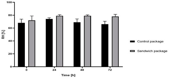 To determine the relative humidity (RH) inside the paper packaging (paper and sandwich packaging) containing bread, loggers to maximise integration were introduced into each package separately. The RH was measured after 24, 48 and 72 h of storage.