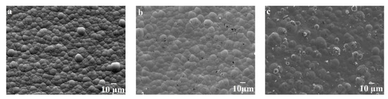 Scanning electron microscopy (SEM) images of the surface with (a) NiP, (b) NiP/SiC50, and (c) NiP/SiC100.