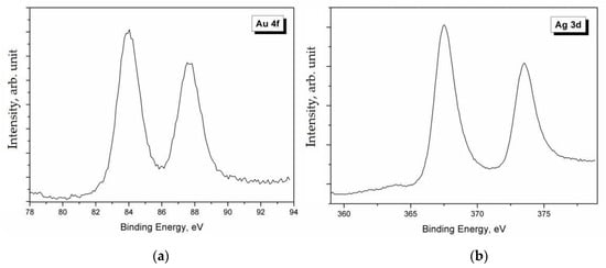 High-resolution XPS spectra of Au 4f (a) and Ag 3d (b).