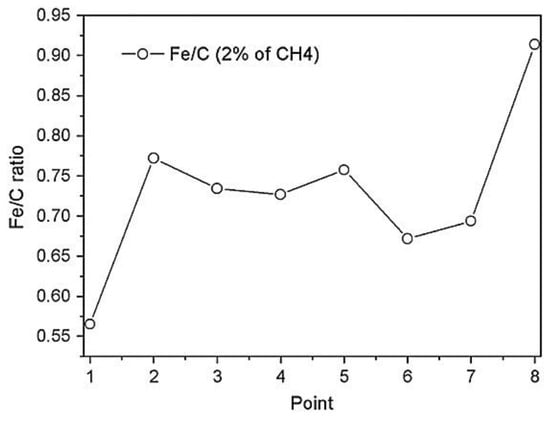(Fe LMM)/(C KLL) intensity ratio calculated along the line scan. [].