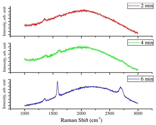 Raman spectra of graphene grown on electroformed Cu foils: exposure time of 2, 4, and 6 min [].