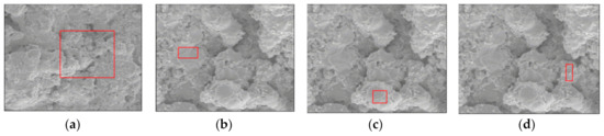 In Figure 5, we emphasized the EDS analyzed surfaces and we reported mean values in Table 4. For pertinent mean values of elemental analysis, in Figure 5a we selected a higher area containing some voids. The idea was to compare the obtained general mean values, including the analysis of selected specific smaller different areas, with the results of this measurement influenced by the existence of these voids. As observed, the general mean values are between the results of test 1 and the mean of tests 2 to 4, as it should be for a porous structure.