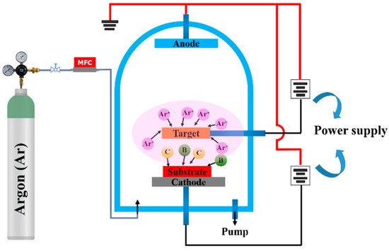 As observed in Figure 1, the workpiece and target are both cathodes, the device chamber is an anode. Argon is continuously introduced during the double glow process, which can be excited to active plasma ions (Ar+). Due to the hollow cathode effect, the sharply increased plasma in the furnace cavity can bring an increased temperature to target and workpiece. The sputtered atoms and ions of the target will increase subsequently. The strike of these particles will also increase the temperature of the substrate. By adjusting the work voltage and current, the working temperature is maintained in the ideal range.
