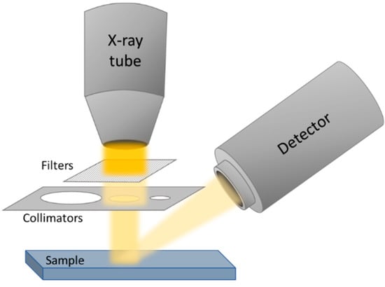 X-ray fluorescence spectroscopy is an analysis tool widely used for the elemental analysis and chemical analysis of materials. When materials are exposed to high-energy X-rays, ionization of their component atoms may take place, exciting them; during the relaxation process, characteristic X photons are emitted and detected for analysis. Due to incident high-energy X-rays, inner shell (K, L, M, etc.) transition phenomena occurs within 100 fs, producing characteristic fluorescence radiation. Ionization consists of the ejection of one or more electrons from the atom and may occur if the atom is exposed to radiation with an energy larger than its ionization energy. X-rays and gamma rays can be energetic enough to eject tightly held electrons from the inner orbitals of the atom. The removal of an electron in this way makes the electronic structure of the atom unstable, and electrons in higher orbitals “fall” into the lower orbital to fill the holes left behind. In falling, energy is released in the form of photons with an amount of energy equal to the difference between the two orbitals involved. Thus, materials emit radiation of the characteristic energies of the present atoms. The apparatus (Figure 11) consists of (i) an X-ray source or tube; (ii) a fixed or exchangeable collimator that determines the measurement spot; (iii) one or more filters to attenuate the characteristic lines of the tube and making the light more “white”; and (iv) a detector.