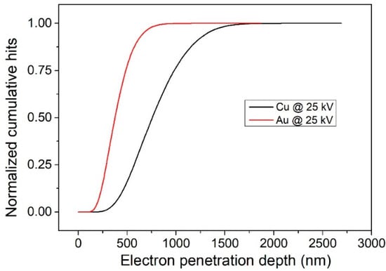 - Drouin, D.; Couture, A.R.; Joly, D.; Tastet, X.; Aimez, V.; Gauvin, R. CASINO V2.42—A fast and easy-to-use modeling tool for scanning electron microscopy and microanalysis users. Scanning 2007, 29, 92–101. [Google Scholar] [CrossRef]