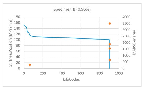 In a series of nominally identical DCB specimens tested, a range of crack energy (JR) values were returned [79]. The data are shown in Table 1. Studying the AE output for each test, it could be seen that the two specimens with the highest JR values (Specimens A and D) had AE hit waveform characteristics that all fell within a tight range. Rise time under 1400 us, less than 600 counts (threshold crossings), MARSE energy under 90, and total duration under 2400 us. Using these four values as a “safe zone” template for a good crack resistance test, the AE activity from the other specimens can be compared against this template to see if their lower JR results are reflected in an altered AE microseismology.