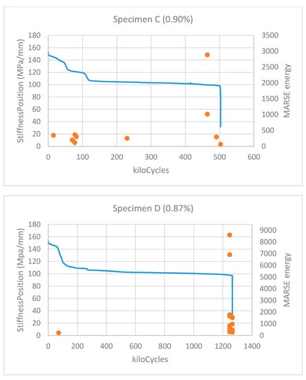 The high crack resistance specimens (A and D) provide the template for the AE analysis, and as shown in Table 1, the deviation from this template (violation of one or more parameter threshold) in the AE activity from the other specimens seems to match their lower level of resistance to crack propagation. Such analysis of multivariate data is more usually done automatically and in greater detail by machine learning algorithms, either using a preset template for the waveform characteristics, or via self-learning.