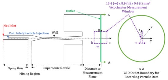 Three-dimensional computer models of the spray gun-nozzle assembly for both VRC and SPEE3D systems were sketched according to manufacturers’ drawings to represent the fluid domain accurately for CFD simulations. A representative sketch of the computational domain can be seen in Figure 3.