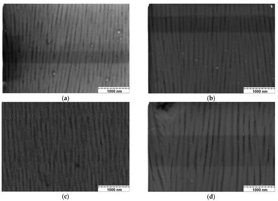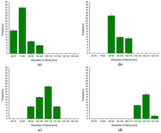 | Sample | Amount of Fibers/nm × 103 | Deviation | Average Fiber Diameter [nm] | Deviation [nm] |