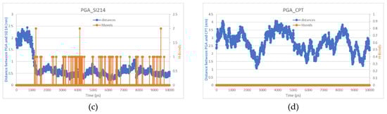 All atom molecular dynamics (MD) simulations are attracting attention in the polymer-based drug delivery field as a tool to enlighten the interactions taking place at an atomistic level [,,]. Our 10 ns MD simulations for the interactions between the dimers of PGA and the two drugs were used to evaluate the distance between the moieties and the possible formation of hydrogen bonds. Multiple H-bond formation was observed in the PGA-SI214 simulation (Figure 2a,b), while no H-bonding formation was observed in the PGA-CPT simulation (Figure 2c,d). These preliminary computational data can be used to corroborate the different experimental enhanced apparent water solubilities of the two drugs when formulated with the polymer (Figure 1b). In fact, as can be seen from Figure 1b, SI214 ΔA% improved twofold compared to the CPT, hinting to a better interaction between the polymeric chains and the KI drug.
