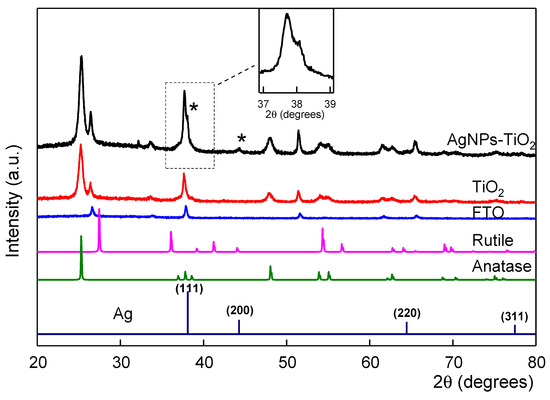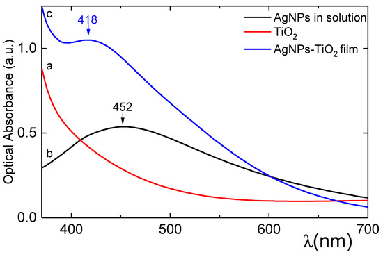- Ivanova, T.; Harizanova, A.; Koutzarova, T.; Vertuyen, B. Optical and structural characterization of TiO2 films doped with silver nanoparticles obtained by a sol-gel method. Opt. Mater. 2013, 36, 207–213. [Google Scholar] [CrossRef]