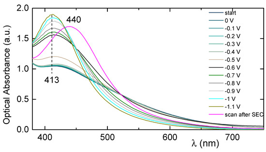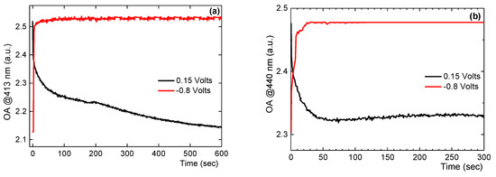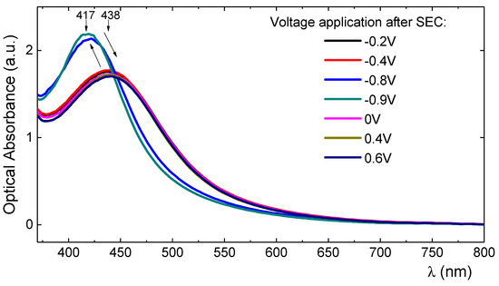 - Couzon, N.; Maillard, M.; Bois, L.; Chassagneux, F.; Brioude, A. Electrochemical observation of the plasmonic effect in photochromic Ag nanoparticle filled mesoporous TiO2 film. J. Phys. Chem. C 2017, 121, 22147–22155. [Google Scholar] [CrossRef]