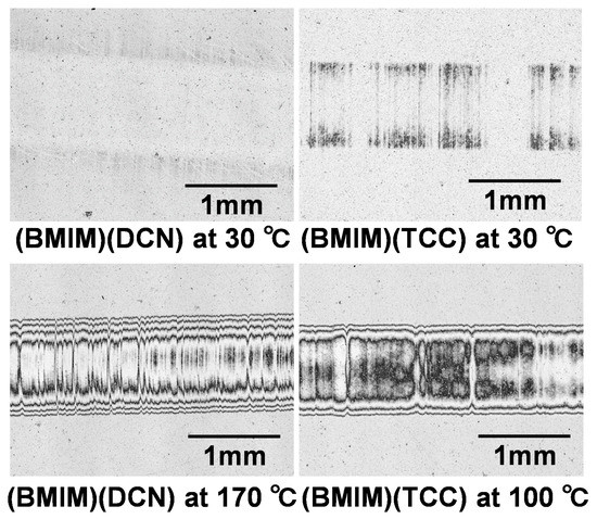 In this study, (BMIM)(DCN) and (BMIM)(TCC) purchased from Merck (Darmstadt, Germany) were used as lubricants. The molecular structures and physical properties of these ionic liquids are listed in Table 1 and Table 2, respectively. Their viscosities were measured with a tuning fork vibration viscometer (SV-1A, A&D Company, Tokyo, Japan). Their purity and melting points were catalog values.