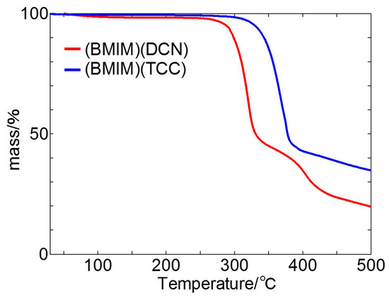 Thermal stability of (BMIM)(DCN) and (BMIM)(TCC).