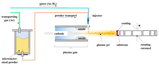 - Fauchais, P.L.; Heberlein, J.V.R.; Boulos, M. Thermal Spray Fundamentals: From Powder to Part; Springer: New York, NY, USA, 2014; ISBN 978-0-387-28319-7. [Google Scholar]