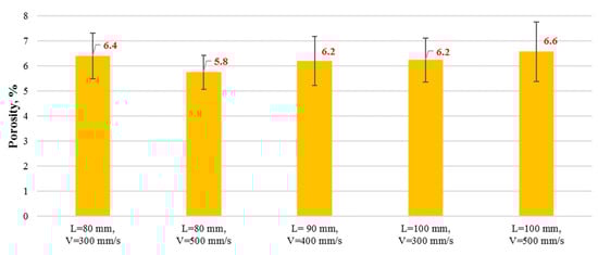 The porosity of the coatings was relatively low, as indicated by the results presented in Figure 6. Similar porosity values were found for all the coatings. They are in the range of results reported in other papers for coatings with similar chemical composition [,].