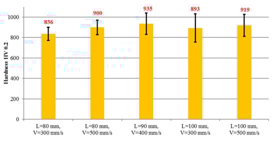 Subsequently, the microhardness of coatings was measured with Vickers penetrator under the load of 1.96 N (HV0.2) using the HV-1000 hardness tester (Sinowon Innovation Metrology, Dongguan, China), according to the standard []. For each coating 10 imprints at the cross-section were made and the average values, as well as standard deviations, were calculated.