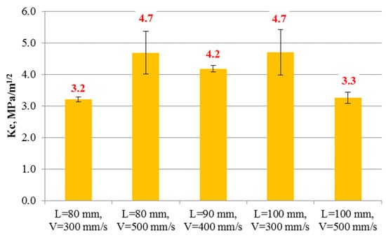 Fracture toughness (Kc) for the coating–substrate system cannot be easily determined in a similar way as for the bulk materials. A popular approach in surface technology is a method based on measurement of cracks length, which occur in coating after Vickers penetration. The length of the cracks can be related to Kc value according to Palmqvist observation []. The further methodology depends on cracks identification and a ratio between l and a parameters (Figure 3). When the l/a ratio is in range from 0.1 to 1.5 then a Niihara model is used to calculate the fracture toughness []: