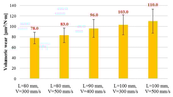 - The homogeneous structure of coating and relatively low porosity (below 7% in each case) allowed obtaining satisfactory results of wear resistance in BoD. The highest volumetric wear was observed for coatings sprayed with the longest spray distance of 100 mm, where microcracking, grooving, and detachment of loosely bonded particles were dominant during wear resistance testing. The shorter spray distance results in around 20% better wear resistance than a longer one. It was established that the spray process parameters have an effect on wear resistance of the coatings.
