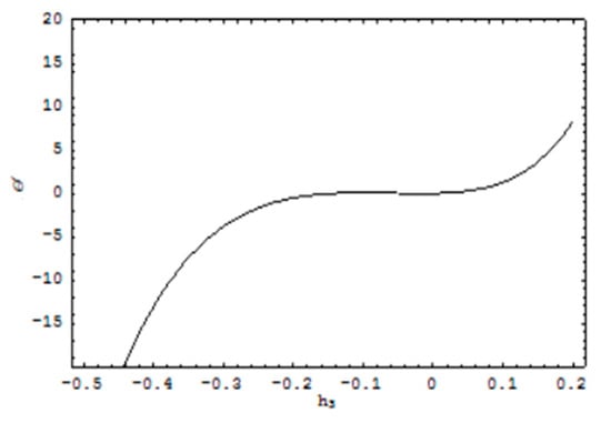 To obtain the values of auxiliary parameters h1, h2 and h3, h-curves against are prepared and the results are given in Figure 2, Figure 3 and Figure 4. Convergence intervals lie in the flat portion of these h-curves as witnessed from plots. It is observed those permissible values of h1, h2 and h3 up to the 10th order of approximation are: −0.1 ≤ h1 ≤ 0.3, −0.12 ≤ h2 ≤ 0.01, −0.2 ≤ h3 ≤ 0.05.