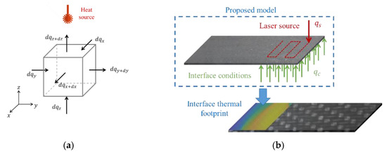 where θ stands for temperature, t for time, cp for specific heat, ρ for density, and for thermal diffusivity. The term represents the energy provided to the material. An extended mathematical development of Equation (2) can be found in [15].